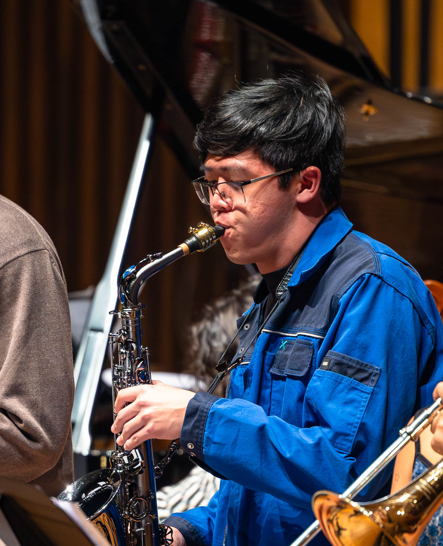 Stephan Divic (bass), Chris He (saxophone), and Mary Nguyen (piano)